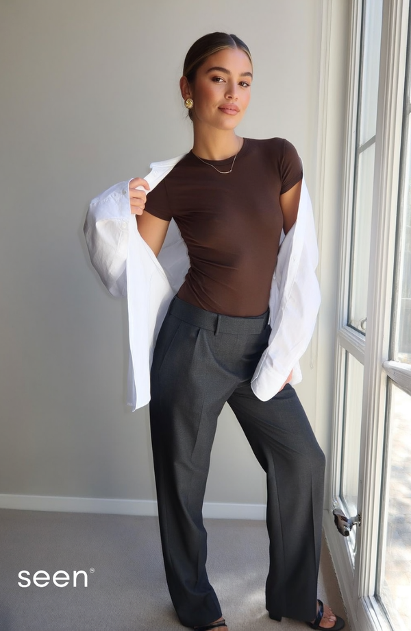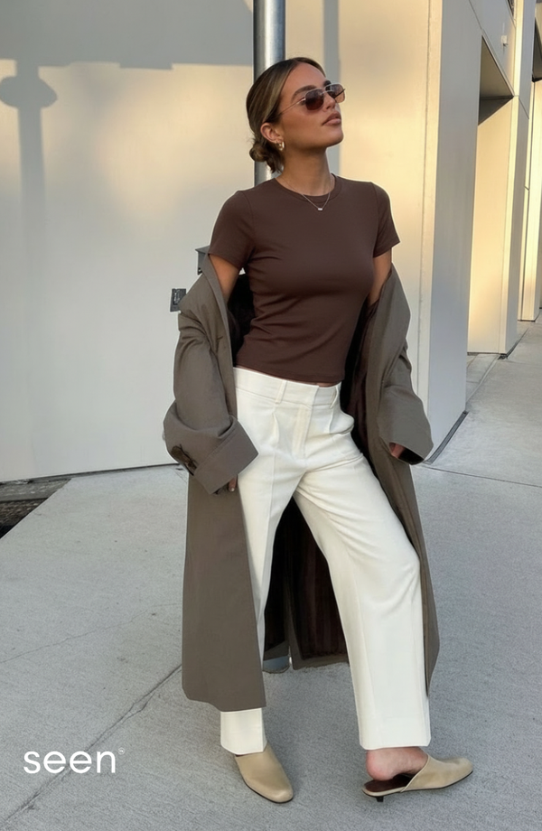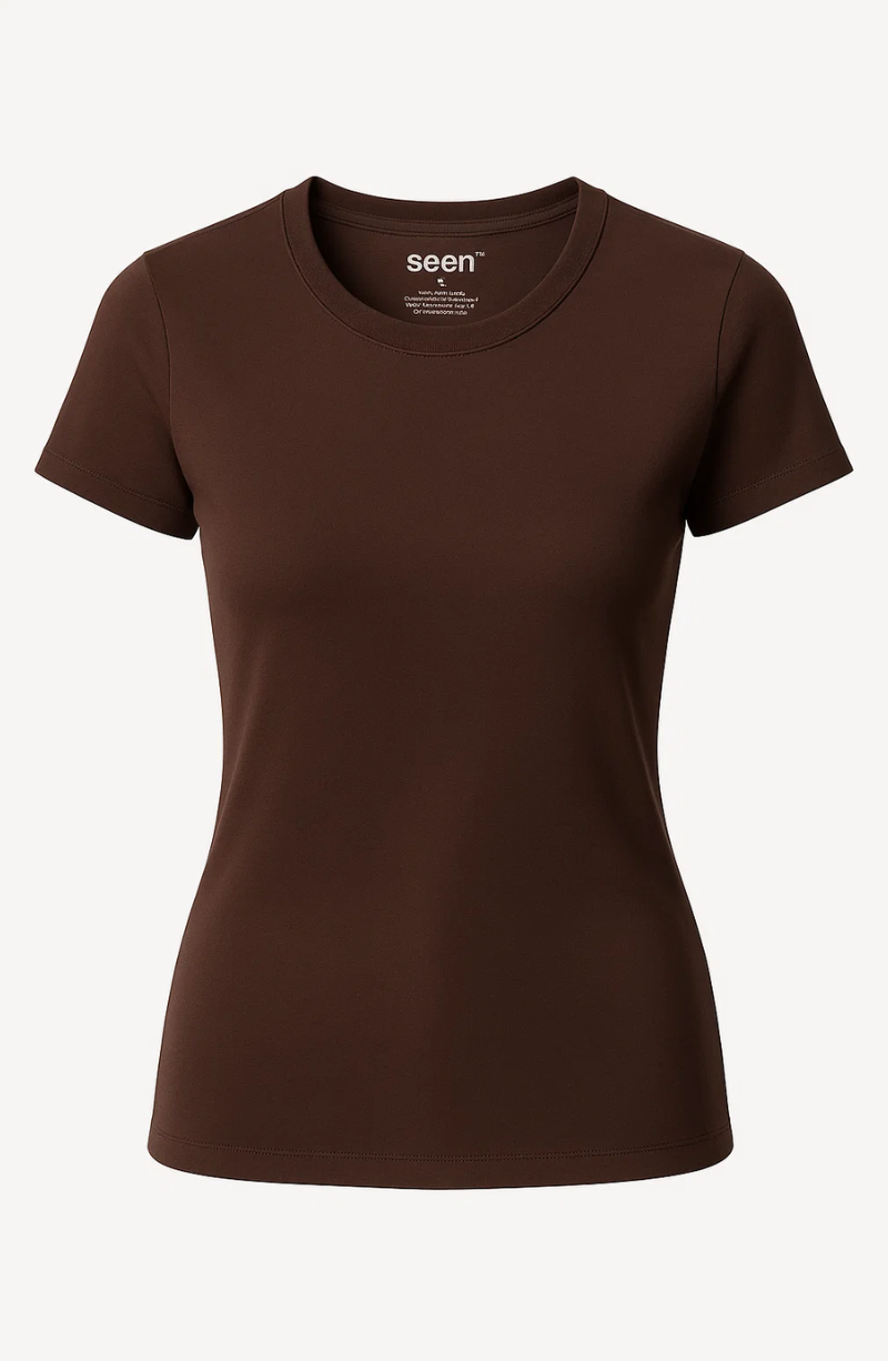 Essential Cotton Tee Brown Women Soft Stretch Cotton Blend